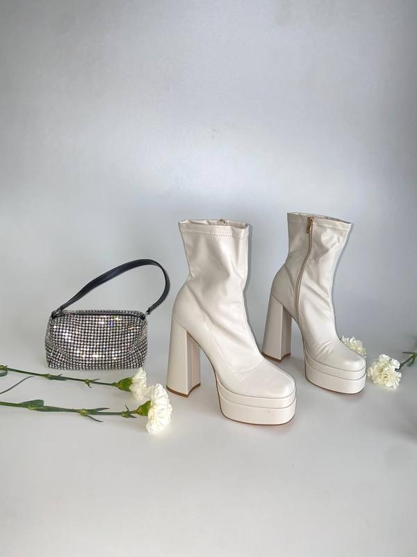 Обратите внимание поднималась цена 🥲 Снова в наличии 35,36,37,38,38,38,39,40 Хит продаж Ботильоны на высоком каблуке Код 709 Цвет: бежевый Внутри : текстиль Платформа :5 см Материал : эко кожа Каблук : 15 см Размер в размер 35-40