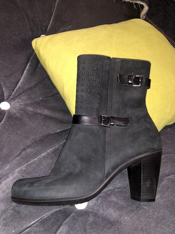 “Ecco”, глубоко темный черный нубук в новом состоянии, указано 38 а подойдет и на 39, комфортные и очень стильные! Каблук 8 см.
