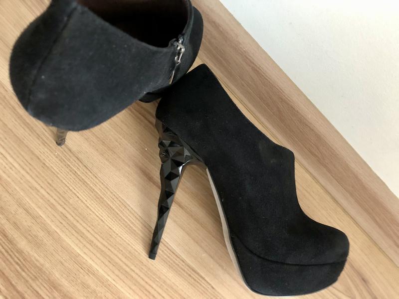 Ботльоны итальянского бренда. Bluzi,черного замша на танкеточке, интересный резной каблук