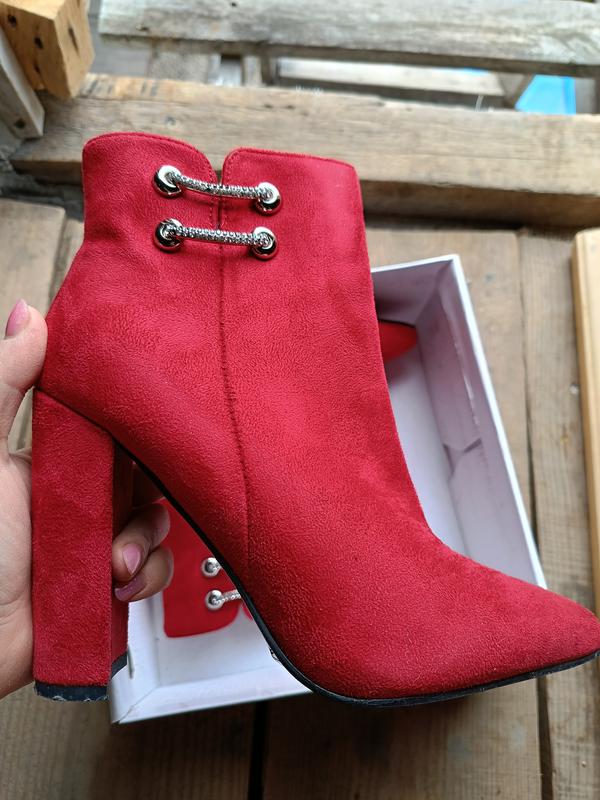 Одягала один раз. Размер 38, стельки 25-25,2см. Цвет насыщенно красный. Есть небольшая потертость, совсем не заметна, только если присмотреться (на последнем и предустановленном фото).