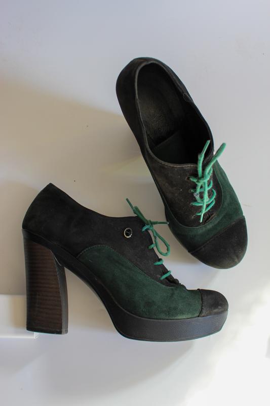 Замшеві ботінки, в хорошому стані, виглядають мініатюрно на ніжці, каблук 10.5см, устілка 24,5- 25см