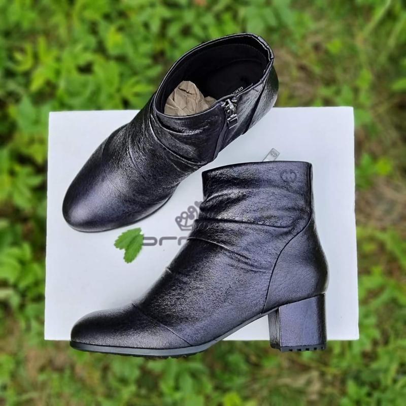 Ботильоны Gerry Weber, верх кожа, середина подкладка из текстиля, каблук 5 см, высота голенища 12.5 см, объем голенища вверху 24 см. Цена –1250 грн. ✅37р.-стелька 25 см(за счет формы носочка идут ориентивно на стопу 23.8-24 см). – Фактура кожи – эффект потрескавшейся кожи. – Цвет между черники и фиолетовым. – легкая, мягкая и комфортная модель. – Новые, сток, идут без коробки.