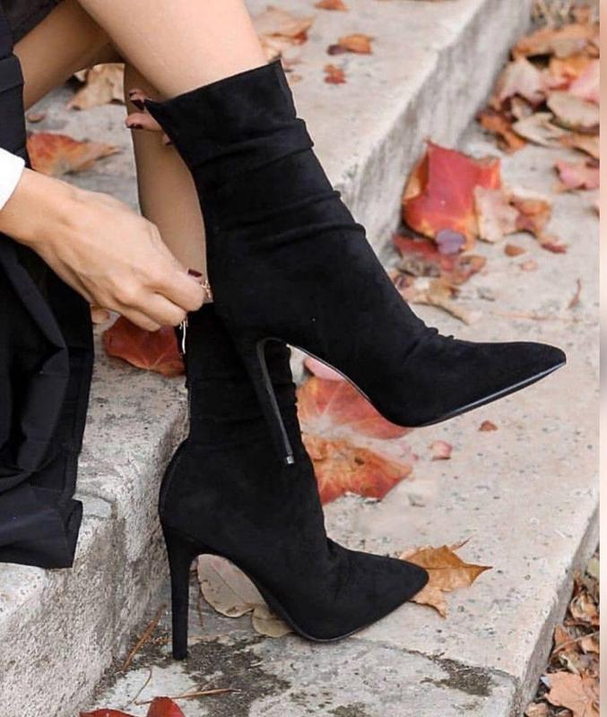 39-25,5 см 40-26 см Ботильоны на высоком каблуке Код 655 Идут на узкую ногу Цвет: черный Внутри : флис Высота от пятки :16 см Материал : эко замша Каблук : 11,5 см Размер в размер