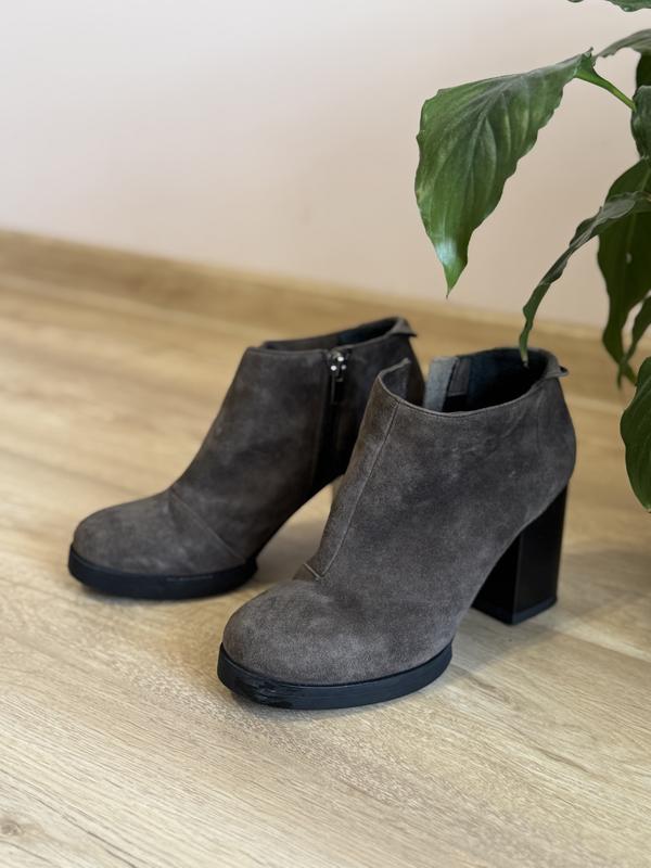 Зручні, легенькі. Виглядають дуже акуратно. Стан нових( обула на свято) Натуральний замш, всередині байка. Розмір 38. Ідуть до 38.5 Довжина устілки 24.5-24.8. На вузьку або середню ногу. Висота каблука 8.5см. Висота підошви 1см.