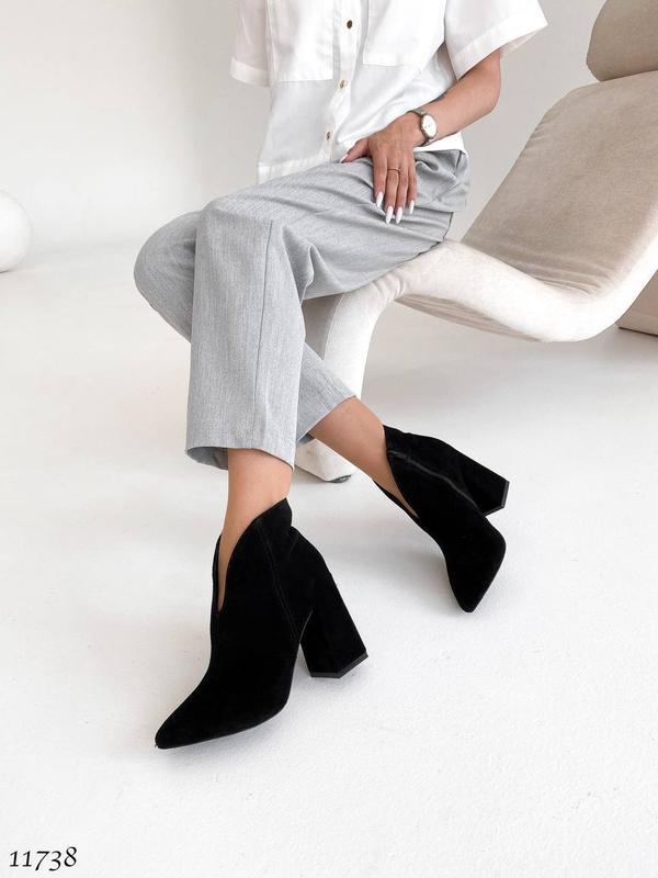 ▫в наличии 36 37 38 39 40▫ Код 11738 Демисезонные ботильоны =NA= цвет: ЧЕРНЫЙ НАТУРАЛЬНАЯ ЗАМША внутри: мягкий флис сбоку рабочая молния высота от пятки 11 см каблук 9,5 см, на узкую и среднюю ножку производство-Украина При отсутствии размера в наличии доступны под заказ 36= 23 см 37= 23,5 см 38= 24 см 39= 24,5 см 40= 25,5 см Вес 36 р= 680 г