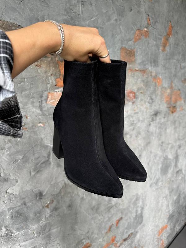Стильные замшевые ботильоны 😍 Очень удобная колодка Арт. 5220 ДЕМІ Арт. 5219 ЗИМА Натуральный замш Внутри байка/мех Производитель Украина Размеры 35-41 ▪️ Высота от пяточки 13.5 см ▪️Каблучок 9 см Размер по сетке: 35-23 36-23.5 37-24 38-24.5 39-25 40-25.5 41-26 🏷️ 2350грн