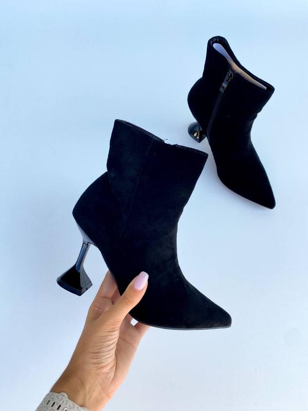 Ботильоны на каблуке рюмка Код 659 Цвет: черный Высота от пятки :12 см Материал : эко замша Каблук : 8,5 см 36-39