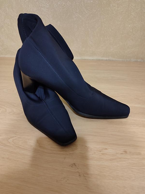 Ботильоны из материала, качественные, размер 35 и 35,5, по стельке не должны мерять, потому что носки длинные