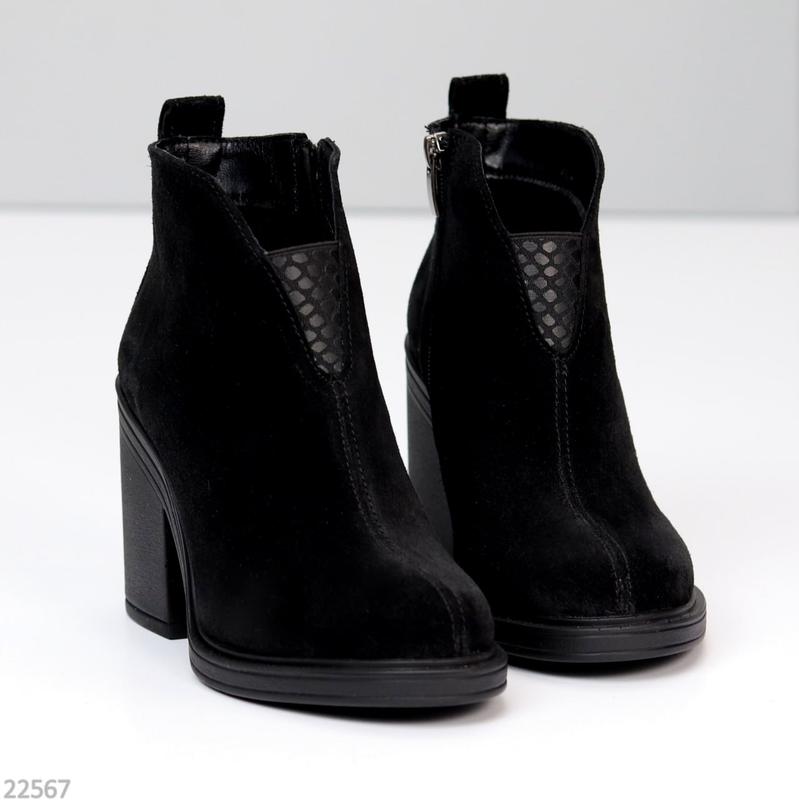 Код 22567 ДОСТУПНЫЕ ПОД ОТШИВ Размеры 36-40 Ботильоны Материал - НАТУР.ЗАМША Внутри - Флис Сезон - Деми Цвет - Черный Высота от пятки - 8,5см Каблук - 9,5см Производитель - Украина На среднюю стопу Размер в размер 36-23,5 37-24 38-24,5 39-25,5 40-26