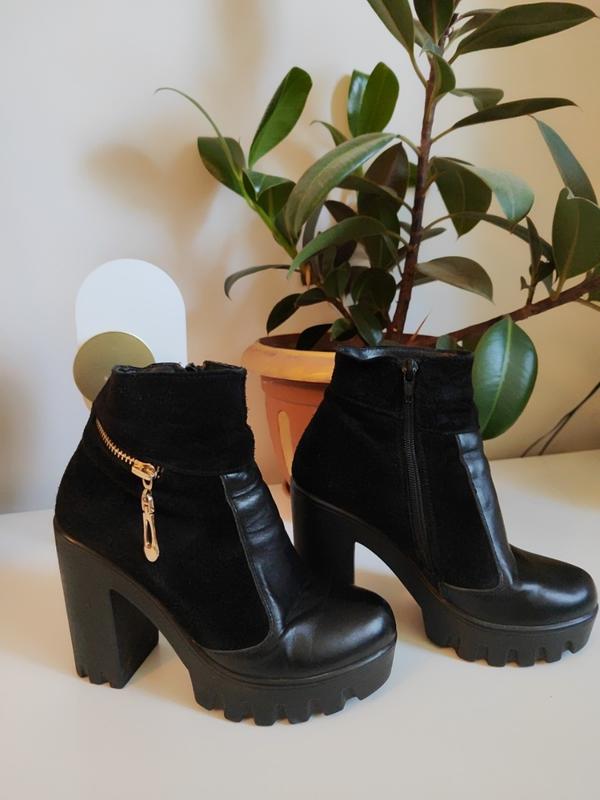Кожаная обувь со вставками натурального замша. Размер стельки 23,5,высота кольца 10 см.Стан удовлетворительный, внутри утеплены флисом.