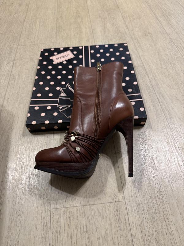 Шкіряні ботильйони з теплой підкладкою та нарядним верхом на високому підборі