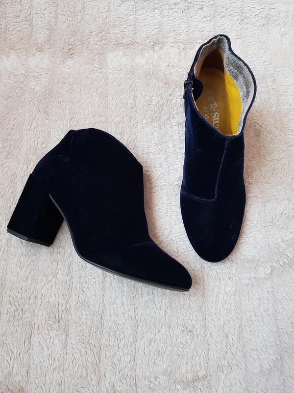 Отличные бархатные ботильоны.С середины обработаны кожей.Стелька 25 см.Каблук 8.0 см.