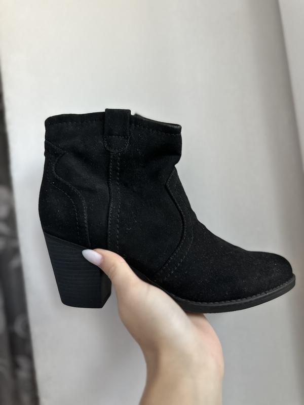 Женские ботинки ковбойки казаки черного цвета марки Graceland, натуральный замш, состояние новые, размер 37, потолка 24, весна-осень, каблук 7 см, на узкую ножку.
