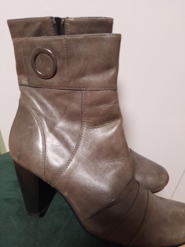 Телячья глянцевая кожа высокого качества, набойка родная, ножни совсем мало, стелька 26, каблук 8. Удобные и красивые. К ним есть кожаная сумочка, Италия, состояние идеальный))