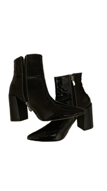 Двухцветные ботильоны, выполненные в черно-белой гамме, вдохновленные стилистикой “101 далматинец”. И черная, и белая части сапог имеют глянцевое покрытие, создающее яркий, лаковый эффект. На белой поверхности видны характерные заводские особенности: небольшие воздушные вздутия, создающие игру света и отражающие блики, что добавляет обуви уникальности. Ботильоны на устойчивом каблуке идеально подходят для межсезонья, сочетая стиль и комфорт.