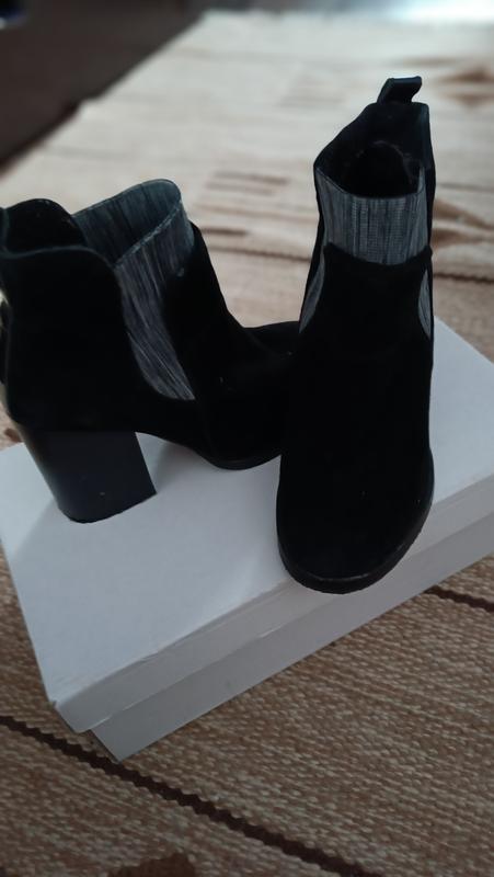 Стильные ботинки из натурального замша утеплены флисом на очень удобном каблуке. Размер 37 стана идеален. Украшены серой резинкой которая прилегает к ноге и красиво удлиняет ее. Дополнительные фото замеры надеваю.
