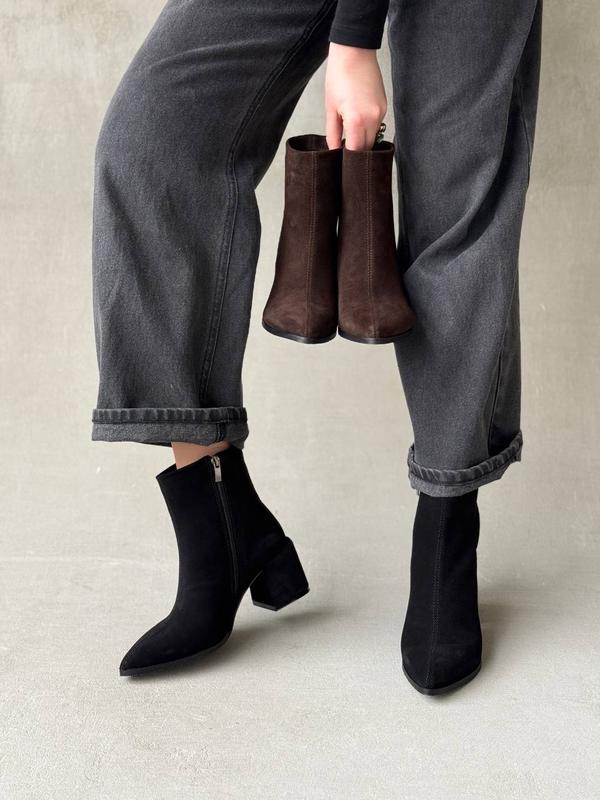 Крутезна новинка ✨ В наличии и доступны к заказу 🔥 Код- 100866 Сапоги из натуральной замши, внутри байка. Каблук 6см, подошва спереди 0.5см. Высота от пятки 13 см. Размерный ряд: 35-41 Цвет: черный. Сделано в Украине. 2970 грн