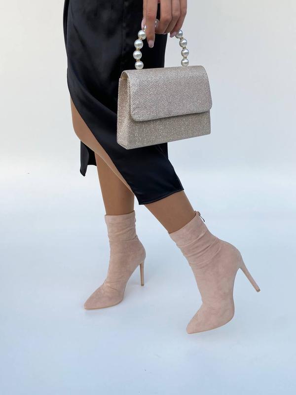😍😍😍 Ботильйони на високому каблуку Код 962 Колір : бежевий Всередині : фліс Висота від пятки :16 см Матеріал : еко замша Каблук : 11,5 см Розмір в розмір