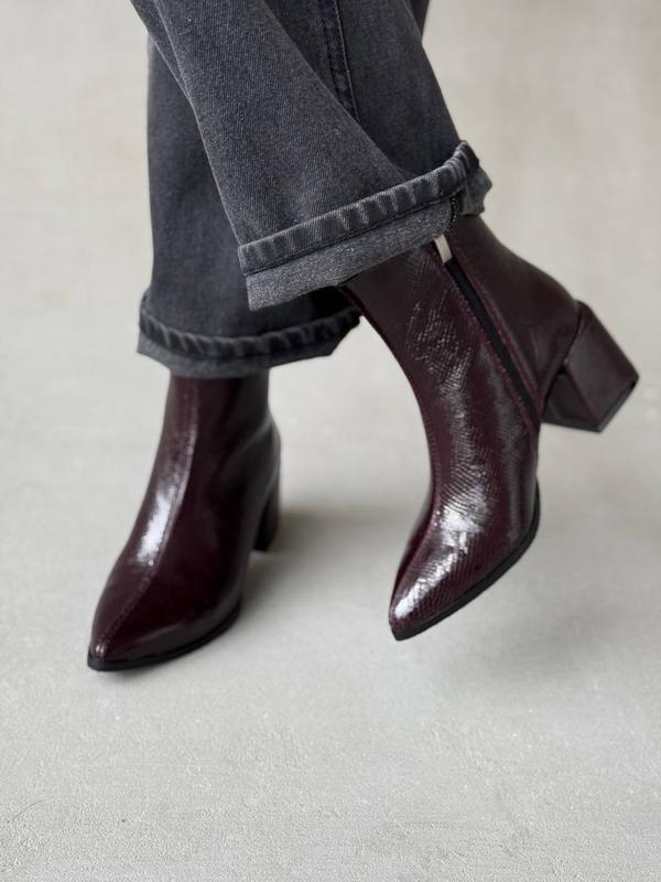 Стильная новинка в наличии и доступны под заказ 😍😍 Код 100869- 37 Сапоги из натуральной лакированной кожи под рептилией, внутри байка. Каблук 6см, подошва спереди 0.5см. Высота от пятки 13 см. Размерный ряд: 35-41 Цвет: бургунди. Сделано в Украине. 2970 грн