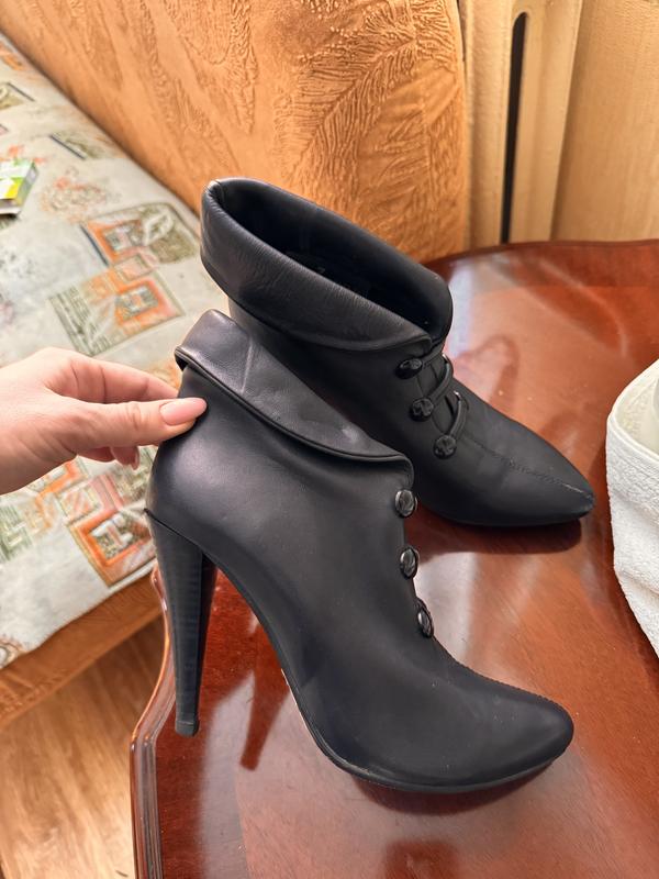 продаю свои ботинки с кожи. состояние очень хорошее, потому что одевались несколько раз, это видно по подошве. стелька 25.5, поэтому подойдет на полномерный 39 размер. является нюанс на одном каблуке, фото добавок, поэтому и такая низкая цена.