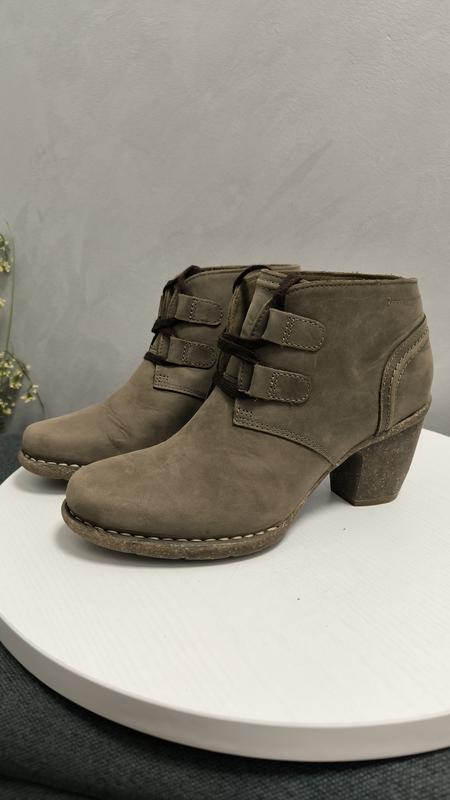 Ботинки набук Clarks коричневого/бежевого цвета с каблуком. Идеально подходят для стильного образа. Мега комфортные, стелька с подушечкой, прошитые, полностью кожаные.
