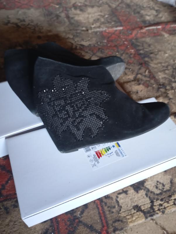 Замшевые ботильоны, с очень красивым рисунком на хрупкую ножку.