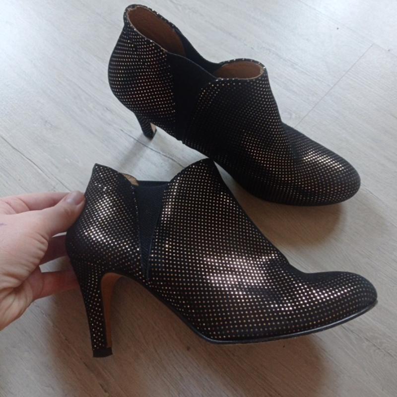 дуже гарні, блискучі батільйони. в гарному стані. зручний, невисокий каблук. по боках резинки на підошві пише ручна робота зручні. Всередині шкіра, зверху замш.