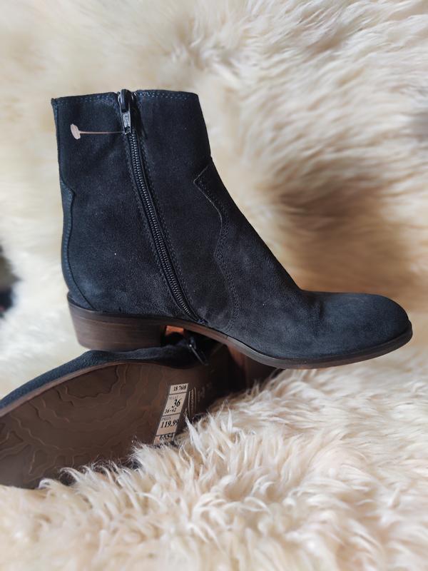 замшевые ботинки/ботильоны тёмно-синего цвета на молнии, произведены в Италии, замша очень мягкая, цена на этикетке 120 евро, подойдут на узкую ногу