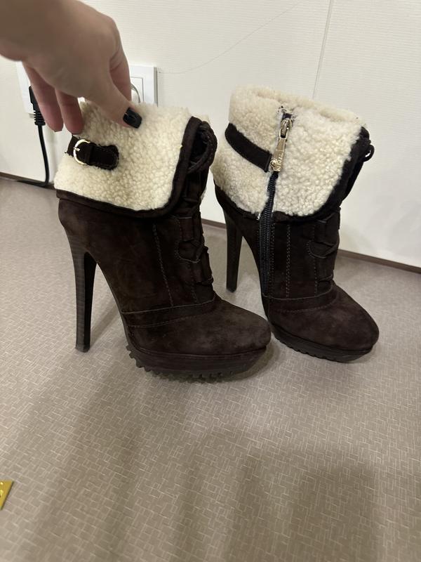 Натуральна замша . Дуже теплі, неймовірно гарний колір шоколад Розмір 35,5 на вузьку ногу . Високий підйом