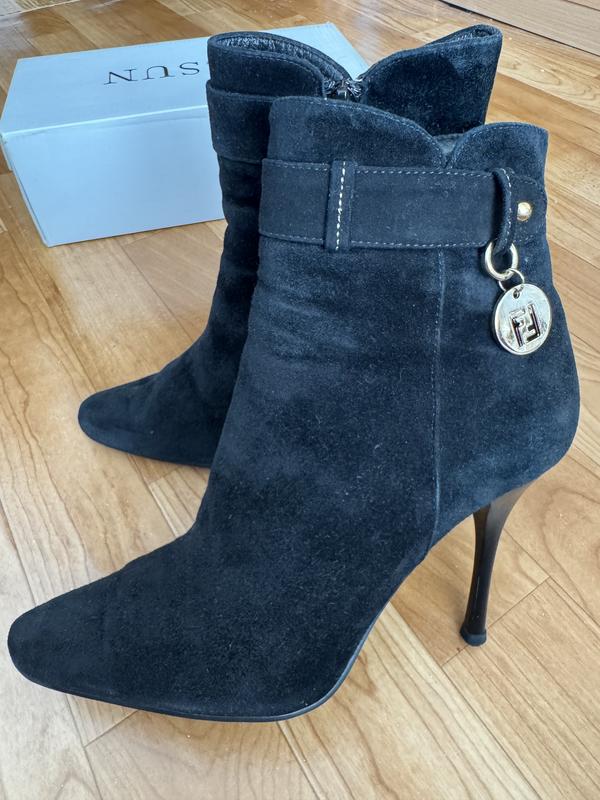 Натуральна замша, всередині мʼякий фліс. Устілка: 23 см Каблук : 10 см
