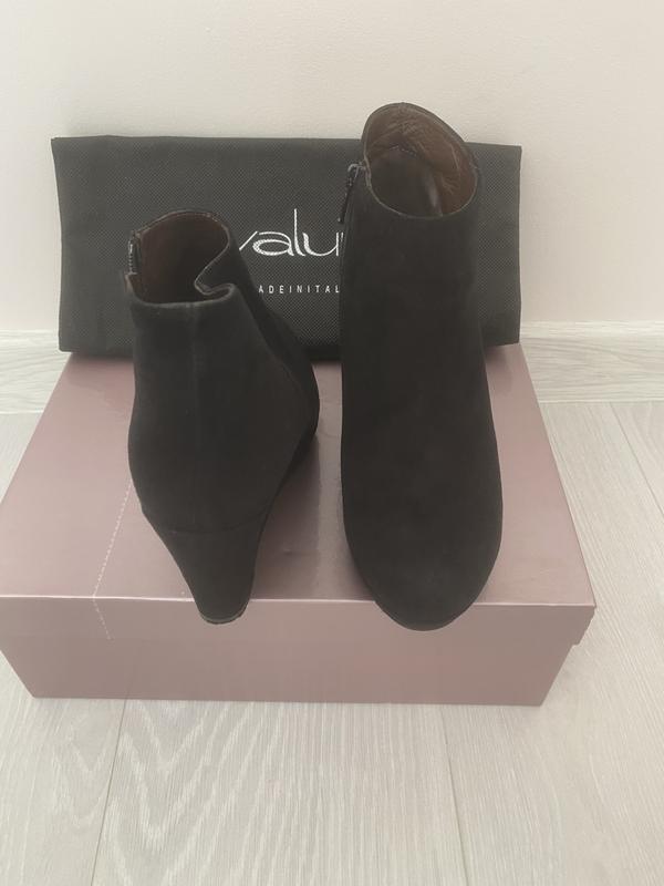 Ботильони натуральна замша . чорні . дуже зручні . розмір 37,5. вироблено в Італії .Є коробка та пильний.