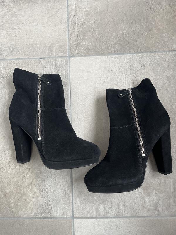 Чорні ботильйони замшеві від h&m. Стан на фото,середина тканина, довжина підбора 11см, танкетка 2см. Зручні та стильні