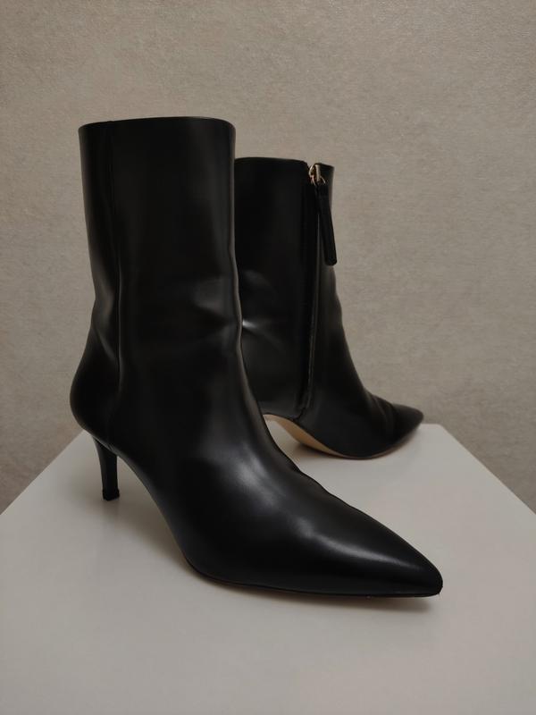 Ботильоны H&M (оригинал). Размер 37. Длина стельки 24 см. Стан очень хорош, но ремонтировался один каблук и окрашивались носочки в обувной мастерской на 9 и 10 фотографиях виден, но при носке этого почти незаметно. Застежка: молния. Цвет: черный, как на фото. Сезон: весна-осень. Страна производитель: Мьянма (Бирма). Очень удобные каблуки. Купились значительно дороже. Невероятно красивые, стильные, модные и очень удобные.