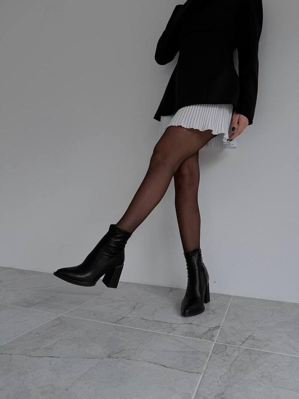 Ботильйони демі демісезонні чорні еко шкіряні стрейчеві х гострим носиком 282
