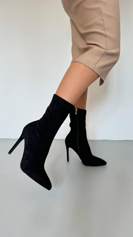 Новинка 🫶🏻 Ботильйони жіночі на шпильці в чорному кольорі Код 1183 Колір чорний Матеріал еко замш Висота від пятки 20 см Каблук 11 см Розмір в розмір 35-41 Ідуть на вузьку ніжку