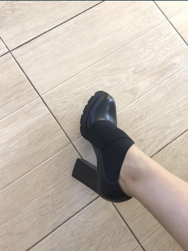 Очень симпатичные и удобные ботильоны. Кожа. Подойдут на любой подъем, резинка подстраивается под вашу ногу. Не смотря на высокий каблук, очень устойчивы и удобны, колодка идеальная. Состояние отличное