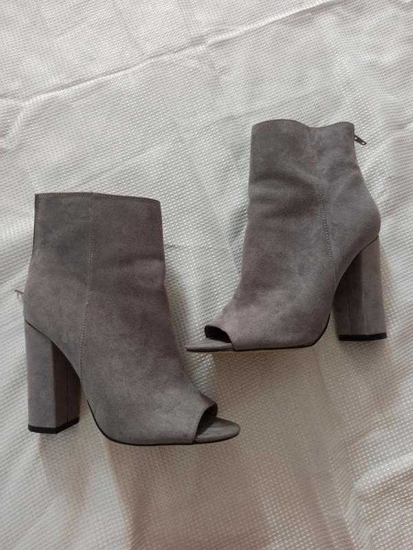 Сірі ботильйони з відкритим носиком! матеріал еко замш, взуті декілька раз, в ідеальному стані, розмір 37 , на вузьку ніжку