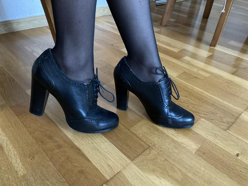 Продам женские броги (перфорированы под оксфорды) на каблуке. Очень стильные и актуальные в этом сезоне ботиночки броги. Натуральная кожа, чёрный цвет, 38й размер, каблук 10,5 см. Ботинки демисезонные (осень/весна). Очень модные, практически классика. Такие модели актуальны уже лет 10 и вряд ли когда-нибудь выйдут из моды. Отлично подойдут как под брючный костюм, так и под юбку или нарядное платье на мероприятие. Модель универсальная, стройнит и визуально удлиняет ножки. Ботинки практически новые, были надеты 4 раза в офис. Продам за 350 грн. Состояние идеальное: нет царапин, опотертостей, заломов, набойки в хорошем состоянии. Если нужны дополнительные фото - пишите, пришлю. Также, если есть сомнения насчёт размера - пишите, пришлю замеры. Доставка возможна Новой Почтой, УкрПочтой, Джастин.