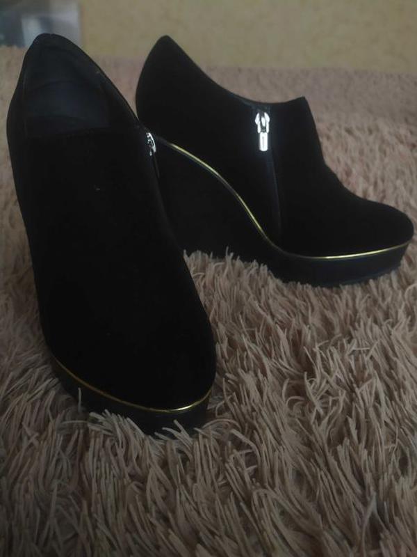 Ботильоны на платформе. Еко замша(хорошо качества) сезон: деми розмер:40 Высота платформы 11.5 см подошва: 2.5 Размер в размер Цвет: черный Красиво сидят на ножке и очень удобные.