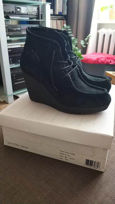 Замшевые ботильоны на танкетке, модель Stacy. Носила очень мало, состояние идеальное. Очень удобная модель, подойдёт на ногу 25 см