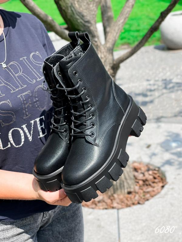 НОВИНКА Черевики жіночі Steffi чорні Код: 6080 Матеріал: натуральна шкіра Колір: чорний підошва: 6 см, спереду: 4,5 см висота від п'ятки: 15 см всередині: текстиль Розміри 36-40 36-23,5 см 37-24 см 38-24,5 см 39-25 см 40-26 см
