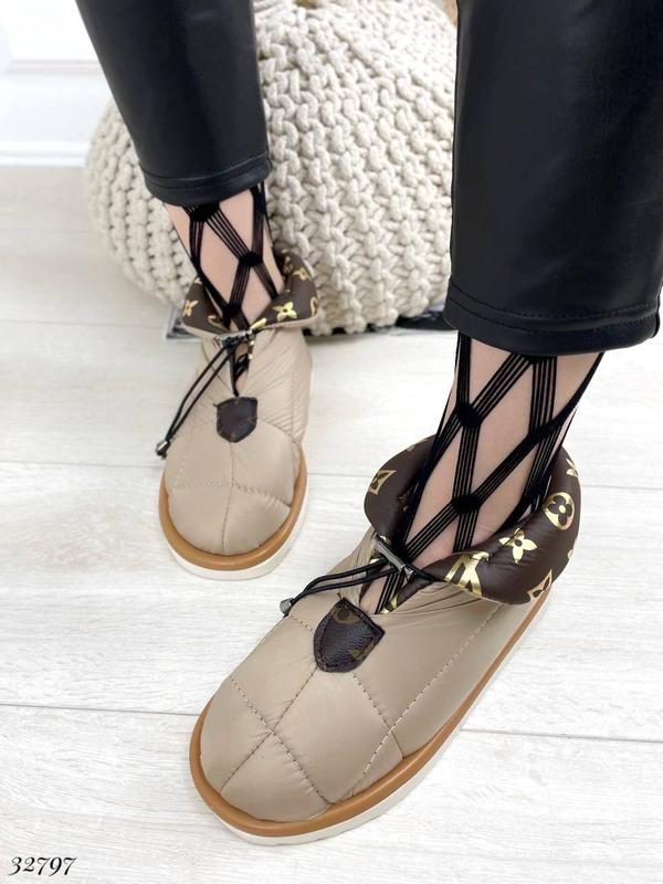Ботинки дутики LV Цвет:бежевый Материал: плащевка Сезонность: зима Код товара: 32797 ▪️Высота подошвы спереди: 2,5см; ▪️Высота подошвы сзади:3см; ▪️Высота от пятки: 14 см; Размерная сетка : 36 - 23; 37- 23,5; 38 - 24; 39 - 24,5; 40-25 см .