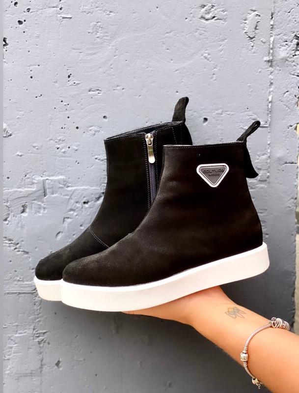 ⚫️код 7440 Нереально круті черевики, які стануть одночасно базою та родзинкою у твоєму образі Матеріал :НАТУР ЗАМШ всередині на байці Підошва 2,5, висота 13 см Р-сть 36-40 Колір: чорний 36-23,5 см 37-24 см 38-24,5 см 39-25,5 см 40-26 см