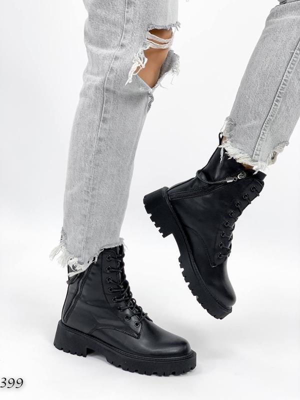 Код 399 Чоботи Демі, колір чорний, матеріал: НАТУРАЛЬНА ШКІРА, всередині: Плюшевий Фліс, збоку робоча блискавка одна висота 14 см підошва ззаду 5 см спереду 3 см з 36 по 40 розмір у розмір 36 23,5 см 37 24 см 38 24,5 см 39 25,5 см 40 26 см