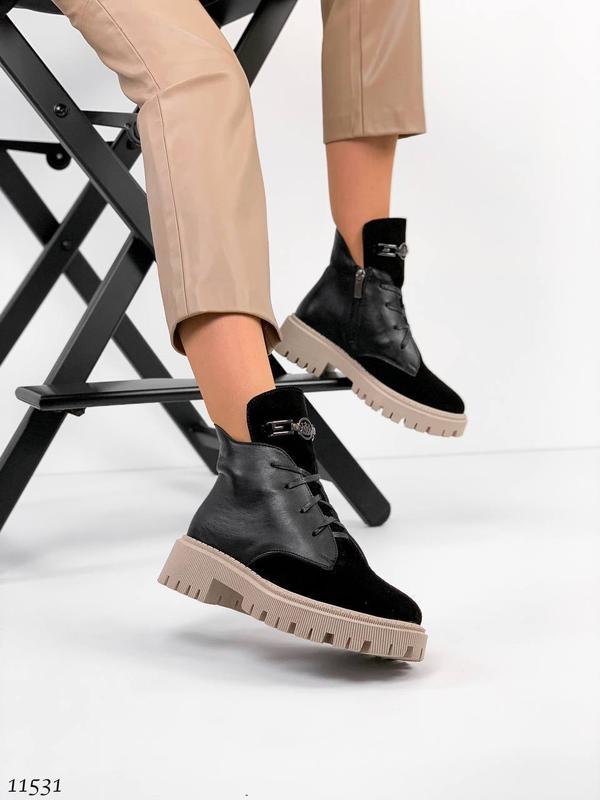 Знову в наявності 🌿 Код 11531 Демісезонні черевики, колір: BLACK, матеріал: НАТУР. ШКІРА+НАТУР. ЗАМША, збоку робоча блискавка, всередині: байка, висота від п'яти 12,5 см, підошва: спереду 4 см, позаду 5 см, вироб.- Україна. 36= 23 см 37= 23,5 см 38= 24,5 см 39= 25 см 40= 25,5 см 1900 грн