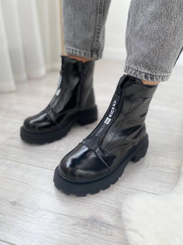 Код 1044 Матеріал: Еко лак Сезон: демі Підошва 6 см, висота 14см Колір: чорний 36-23,5см 37-24 см 38-24,5 см 39-25 см 40-25,5 см 41-26 см
