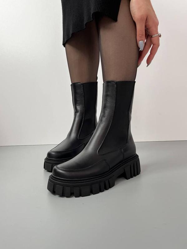 Стильні високі челсі Код 4924 Сезон-зима Натуральна шкіра Натуральне хутро Висота від п‘яточки 20 см Висота підошви 5 см Виробник Україна Розмірна сітка: 36-23.5 37-24 38-24.5 39-25 40-25.5-26