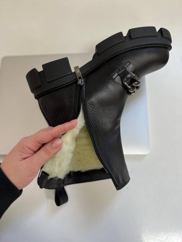 Новинка в наявності 🌿 Код 11845 Зимові черевики, колір: BLACK, матеріал: НАТУР. ШКІРА, всередині: набивне хутро (у складі 30% овчини), збоку робоча блискавка, висота від п'яти 16 см, підошва: спереду 3 см, позаду 4,5 см, вироб.- Україна. 36= 23 см 37= 23,5 см 38= 24,2 см 39= 25 см 40= 25,5 см 1930 грн