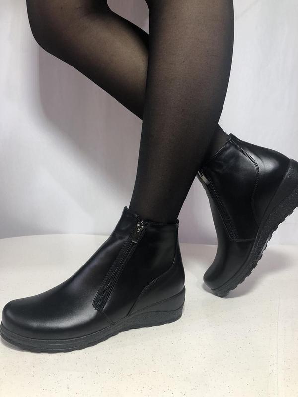 Ботинки женские кожаные зимние на меху на широкую полную ногу больших размеров 40 - 26. 5 -27 см стелька идут как полный 41 размер зимняя обувь женская 41р Ботинки зимние утеплитель мех полушерсть женские кожаные натуральная кожа идут ТОЛЬКО !на широкую ногу больших размеров изготовлены укр фабрике из качественной кожи и по правильным лекалам Нога в этой обуви выглядит аккуратно элегантно и чувствуется себя устойчиво и удобно Женские ботинки на платформе 3.5 см Утепленные внутри мехом подошва ТЭП метод крепления подошвы-- горячая вулканизация одно из самых последних решений для изготовления подошв обуви - термоэластопласт, или ТЭП. Данный материал изготовлен на основе термопластичной резины, которая сочетает в себе отличные качества эластичного каучука и термопластов. Благодаря подошве из ТЭП обувь прослужит не один год, материал устойчив к температурным перепадам, лютым морозам, воздействию химических веществ. Поэтому зимняя обувь с подошвой из термоэластопласта - выгодная покупка. А теперь ответим на главный вопрос: скользит ли подошва из термоэластопласта (ТЭП)? -Нет, не скользит даже в гололед. Идут на широкую ногу на высокий подьем Размеры полномерные Производитель Укр фабрика цена ниже чем в такой же турецкой модели