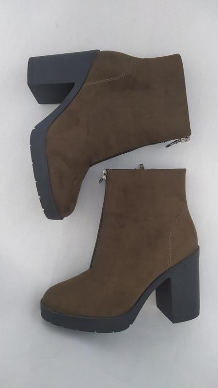 Цвет хаки,камера передала как коричневый. Длина стельки 23 Ширина 7,5 Объём 23 Высота ботинка 11 Высота каблука 9,5 и 2 Объём верха 24 см. #9В